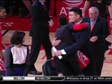 火箭队坐镇主场迎来公牛的挑战,首节比赛双方打的非常胶着,公牛依靠着隆多最后时刻的三分进球反超1分进入第二节。次节火箭攻防两端全面爆发,埃里克-戈登开局不久连进三记三分,火箭凭借着一波24-4的一波流一举拉开比分,半场结束时火箭60-49建立起11分的领先。半场休息期间,火箭为姚明举行了球衣退役仪式,姚明的11号球衣在丰田中心缓缓升起。易边再战,公牛开局迅速打开局面送出一波14-4的攻势追近比分。火箭暂停归来虽然进攻找回感觉,但防守完全无法限制对手,公牛这一节净胜13分并以81-79反超2分进入第四节。末节火箭仍然止不住颓势,公牛末段凭借着一波9-0的攻势拉开比分占据主动,关键时刻哈登救主,他在最后时刻连砍6分帮助球队将比赛拖入加时。加时赛中双方都取得过领先,哈登最后时刻再度扮演英雄角色,他用一记标志性的后撤步跳投完成2+1反超比分奠定胜局。最终,火箭加时苦战并以121-117险胜公牛拿下胜利。