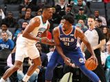 巴泽摩尔突破得手开启第四节,猛龙队迅速回应5分反超。巴泽摩尔单打成功,迈尔斯三分中的,赖特补篮得手,本节进行了5分钟时猛龙队以88-83领先。科林斯跳投命中,迈尔斯再中三分,波特尔两次跳投命中,他们率队打出16-0的小高潮,第四节还有1分55秒时猛龙队以104-85领先。此时老鹰队已无力回天,他们以90-106落败。