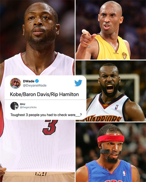 韦德职业生涯中遇到过很多对手,在他心中最难防守的球员有三个,分别是科比、巴郎-戴维斯和理查德-汉密尔顿。科比是历史最强得分手之一,而戴维斯则有着同位置球员中惊人的力量和运球水平,而汉密尔顿则有“中投王”的称号,经常让防守者疲于奔命。