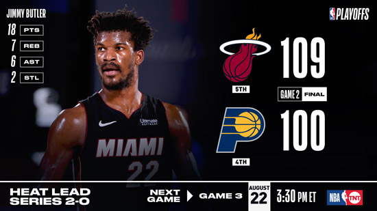 - NBA季后赛:印第安纳步行者VS迈阿密热火 08-20