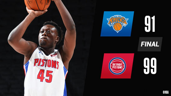 活塞队的墩布亚得到23分和5个篮板,罗斯得到11分和8次助攻,格里芬得到10分和6个篮板。尼克斯队的巴雷特得到25分和4个篮板,兰德尔得到18分、6个篮板和4次助攻,伯克斯得到15分和5个篮板,诺埃尔抢到10个篮板。