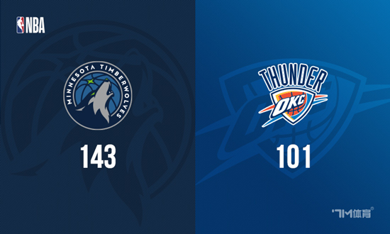 NBA季后赛西部决赛G3,雷霆101-143不敌森林狼。