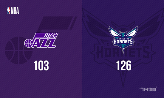 比赛开场,两队很快找到进攻状态,展开对攻战,比分交替领先,但下半节爵士突然断电,黄蜂抓住机会建立两位数领先优势。次节黄蜂延续外线的火热手感,很快将分差扩大到20分以上,爵士这边则由马尔卡宁苦苦支撑,半场结束黄蜂71-48领先。易边再战,爵士进攻端手感回暖,但黄蜂依然牢牢掌握场上主动,分差在20分上下波动,比赛进入末节,黄蜂稳扎稳打维持分差,比赛结果盖棺论定,最终黄蜂126-103大胜爵士。