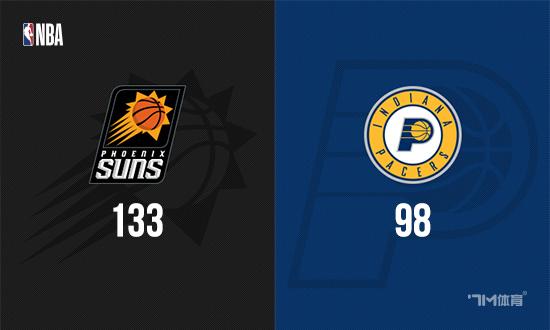 比赛开始,双方上来很快陷入拉锯战,狄龙里突外投状态不错很快得分上双,太阳顺势建立主动权,首节太阳领先8分,次节阿伦连续突破取分助太阳扩大领先,西亚卡姆连续杀伤追分,布克单节上双,狄龙半场轰下24分,太阳半场领先18分。下半场,双方展开拉锯战,内史密斯受伤离场,内姆哈德和西亚卡姆苦苦支撑,但布克连砍10分带队拉开20分以上领先,末节太阳上来20-0直接领先到40分以上,双方练兵,最终太阳133-98大胜步行者,拿到5连胜同时送对手6连败。