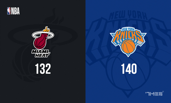 比赛开场,热火先声夺人打出一波7-0,此后两队陷入拉锯战,首节热火三分线外连续开炮,尼克斯这边则由唐斯单节砍下18分带队,热火35-32领先进入第二节。次节回来,唐斯维持进攻状态,同时尼克斯全队三分线外手感滚烫,单节三分球13中10,全队砍下46分,建立两位数领先优势,半场结束尼克斯78-68暂时领先。易边再战,两队依旧维持手感延续对攻战,热火一度将分差缩小到两分,但尼克斯稳扎稳打重新维持五分上下领先,三节结束尼克斯110-104。末节回来,尼克斯打出一波10-0建立两位数领先,热火没能再缩小分差,比赛结果盖棺论定,最终尼克斯140-132战胜热火。