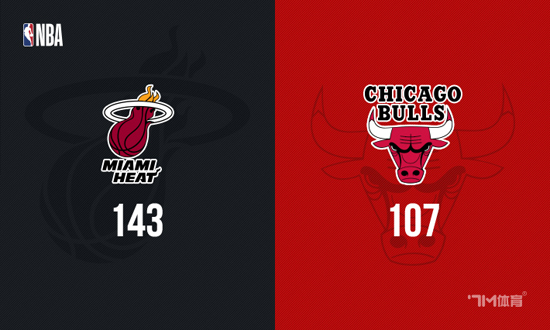 比赛开场,两队都很快进入比赛状态,展开对攻,双方陷入拉锯战,德鲁·史密斯的2+1帮助热火36-32领先结束第一节。次节回来,公牛手感冷却,热火在鲍威尔的带领下延续进攻状态将比分拉开,一度领先到20分以上,半场结束以70-52领先。易边再战,双方开始交替取分,分差在20分上下浮动,节末热火全队连突带投打出一波15-2,三节结束102-75领先到27分。末节回来,热火没有手软继续发力,分差一度扩大到40分,比赛失去悬念,最终热火143-107力克公牛,取得三连胜。