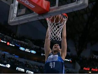 今天,独行侠在主场迎战孟菲斯灰熊。在比赛中,老将诺维茨基上演扣篮。比赛第一球就由诺维茨基打进,值得一提的是,他完成的是一记双手扣篮。这是40岁的老将诺维茨基本赛季第一次扣篮,这个镜头也被不断回放,引起热议。上赛季,诺维茨基有一次扣篮;上上个赛季,诺维茨基则扣了两次。 …… …… [详细]