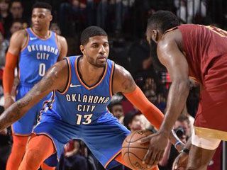 乔治45+11威少连续9场三双 雷霆力克火箭