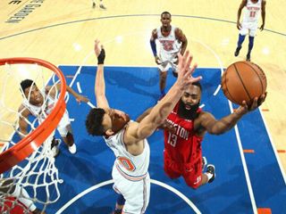 火箭险胜送尼克斯7连败 哈登狂轰61+15戈登20分